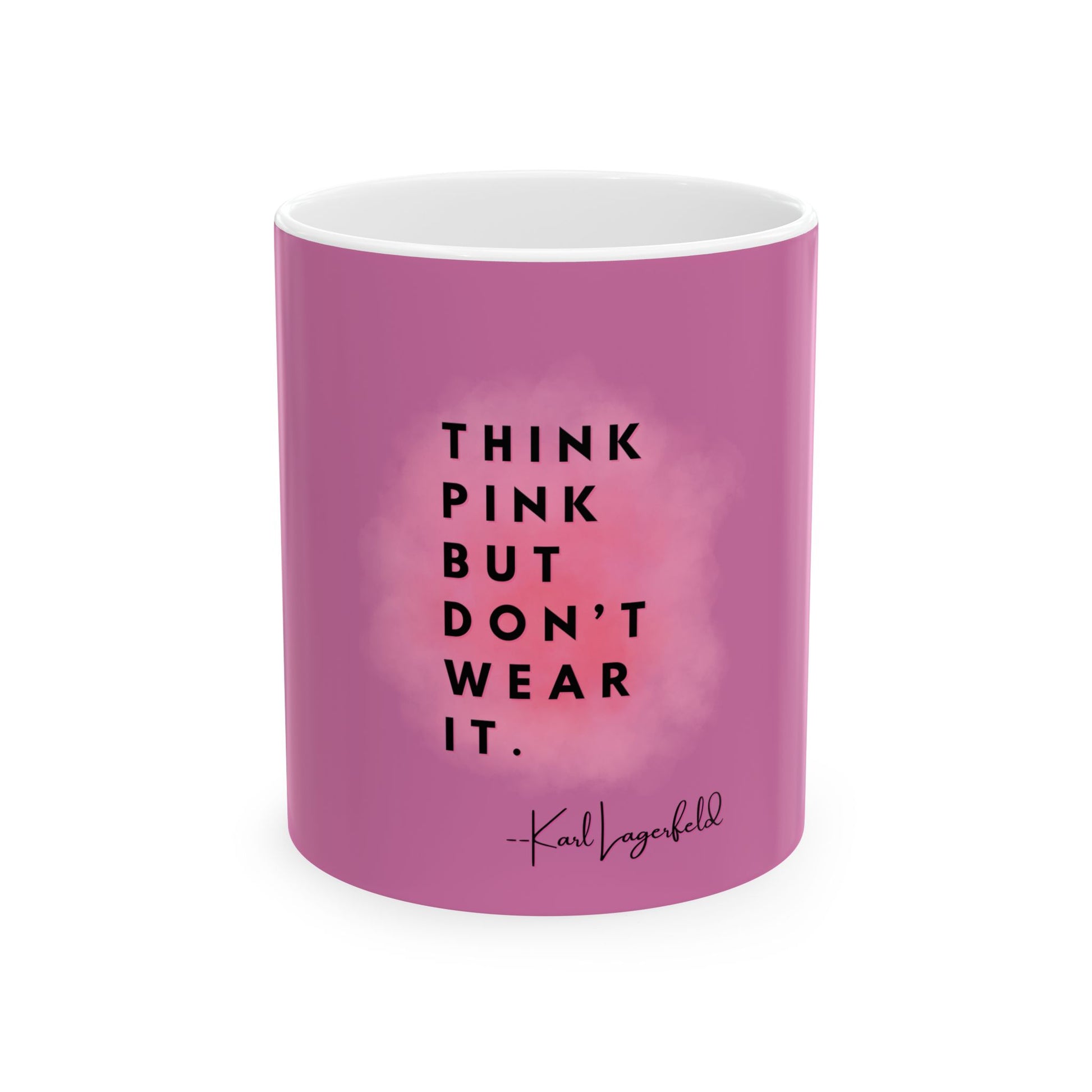 The legendary fashion designer Karl Lagerfeld has some thoughts on PINK. This stylish Pink ceramic coffee mug is made for fashionistas who appreciate the rules of high fashion but also choose their own path. Perfect for fashion-forward individuals who like to set their own trends, with all respect to Mr. Lagerfeld. Relevant for birthdays, holidays, or just to add a pop of color to your daily coffee routine.