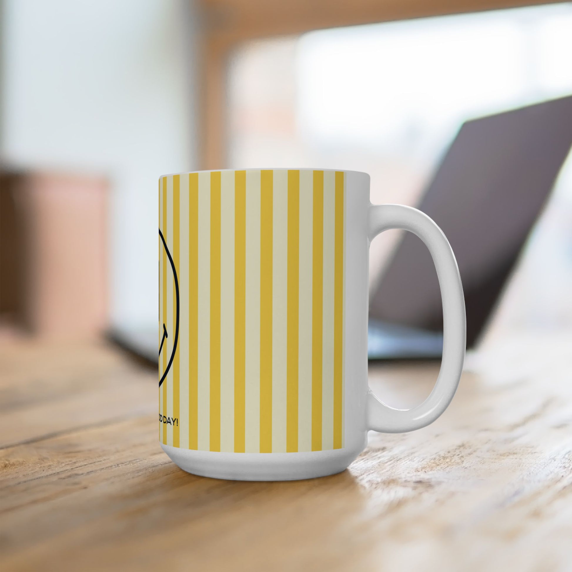 Smiley Face YELLOW Stripe Ceramic Mug – "Have a Good Day" Coffee Cup